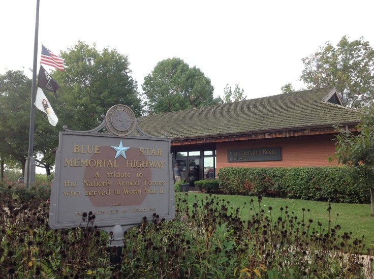 Driving is crazy boring without Alma. And it is definitely gonna take a lot longer than google and Garmin said. Thank God for rest stop. God and the garden clubs. I am taking a quick stretch here at the Cumberland Road rest area in Illinois. There is a lot of POW MIA information out and it is fitting with the Memorial Day season and just having watched the Fred Korematsu story with the Center for American and World Cultures yesterday. But… Time’s up. Gotta keep on trucking.